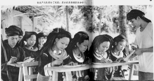 | 大扫盲时期,五指山公社民校在给学员上课。 本报记者 林萌 翻拍 |