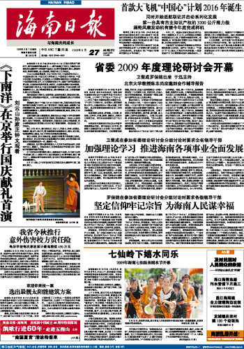 海南日报 头版 001 2009-08-271 2009年08月27日 星期四
