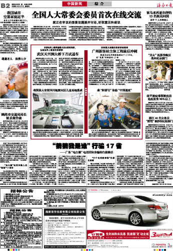 海南日报 中国新闻 010 2009-08-271 2009年08月27日 星期四