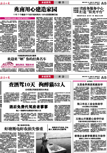 海南日报 本省新闻 005 2009-08-271 2009年08月27日 星期四
