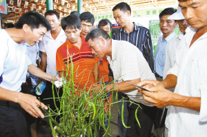 | 8月28日上午,第八届海南(永发)冬季优质农资展销会在澄迈县永发镇开幕。图为农民在选购优质种子。 本报记者 苏晓杰 摄