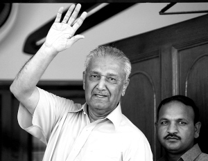 8月28日,巴基斯坦“核弹之父”阿卜杜勒·卡迪尔·汗在位于伊斯兰堡的住所门口向记者挥手。巴媒体当天报道,卡迪尔·汗的一名律师说,巴一家法庭要求政府解除对卡迪尔·汗的所有剩余限制。卡迪尔·汗于今年2月初被解除软禁。 新华社/路透