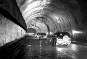 8月29日,车队从三峡翻坝高速公路龚家坝隧道通过。 当日,位于湖北省秭归县茅坪镇的龚家坝隧道顺利贯通。该隧道左幅长3197米,右幅长3186米,是三峡翻坝高速公路工程贯通的首个特长、环保隧道。 新华社发(文振效 摄)