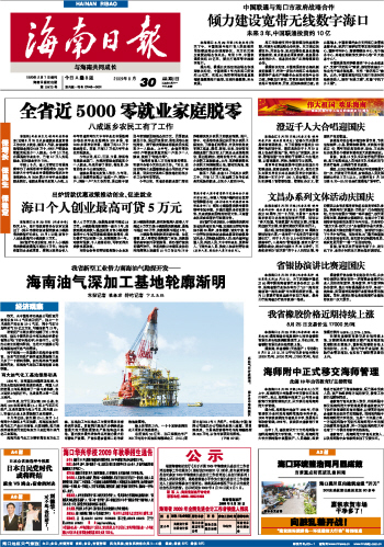 海南日报 头版 001 2009-08-301 2009年08月30日 星期日