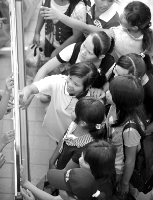 | 28日上午,东方思源学校的学生在查找自己所在的班级。