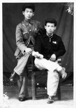 | 曾任文昌县交通总站主任的林克仁(右),1950年在大致坡和战友合影。 |
