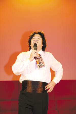 | 主持婚礼时潘劲松很投入。 王黎刚 摄 |
