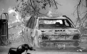 在美国加利福尼亚州的阿克顿拍摄的被山火烧毁的车辆。 新华社/路透