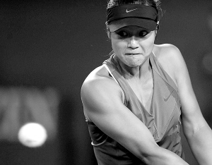 | 9月1日,在美国网球公开赛女子单打首轮比赛中,中国选手李娜以2比0击败罗马尼亚选手奥拉鲁,晋级下一轮。图为李娜在比赛中回球。 新华社发 |