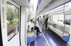 9月1日,在第五届东北亚博览会期间,由我国自主研发并入选“国家自主创新产品”名录的B型不锈钢地铁车———深圳地铁3号线首列车下线仪式在长春举行。这是北车长客为深圳市量身打造的国际一流地铁产品。 新华社发