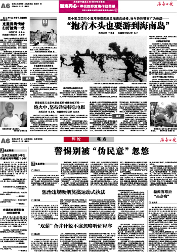 海南日报 碧海丹心·寻找四野渡海作战英雄 006 2009-09-021 2009年09月02日 星期三