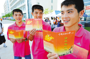 9月2日,三胞胎兄弟赵凌霄、赵凌汉和赵凌云来到中国石油大学(华东)的青岛校区报到,开始了他们同所大学的学习生活。这三胞胎兄弟家住山东省高密市柏城镇小河崖村,在今年的高考中分别考出了616分、617分和618分的“三连号”成绩,一度成为当地家喻户晓的“高考明星”。 新华社发