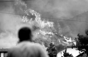 美国加利福尼亚州洛杉矶附近地区的熊熊山火1日仍在燃烧,大火已烧毁上万公顷森林。新华社/法新