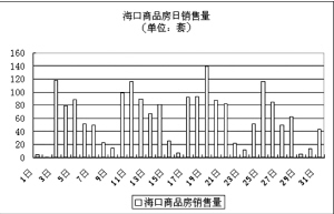 由数据图分析,8月海口商品房日销售量有4次过百,最高的为140套,出现在08月19日,最低的为1套,出现在08月02日。8月初,受到台风天气的影响,海口商品房成交量明显下跌,自中旬开始后出现反弹,无奈月末时间里成交量依旧不理想,导致了整体与7月成交量环比下滑了19.61%。