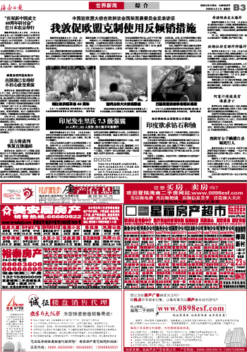 海南日报 世界新闻 综 合 011 2009-09-031 2009年09月03日 星期四