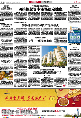海南日报 财经新闻 综 合 008 2009-09-031 2009年09月03日 星期四
