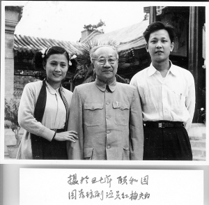 | 1957年张云逸和琼剧演员红梅夫妇在颐和园合影。 |