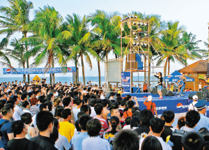 9月5日下午,一场别开生面的沙滩歌舞音乐会在海口假日海滩举行,拉开了海口海滩迎国庆系列活动序幕。 本报记者 古月 摄