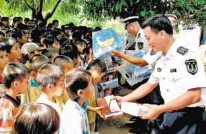 新学期伊始,驻琼海军某部官兵带着篮球、书包、笔记本、学习资料等慰问品驱车来到乐东黎族自治县万冲抱隆小学进行慰问。 本报记者 古月 通讯员 胡开元 摄