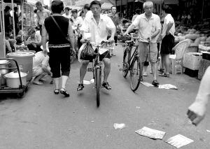 → 9月3日,海口市大英农贸市场群众随手乱扔垃圾的现象时有发生。 本报记者 苏建强 摄