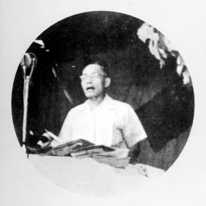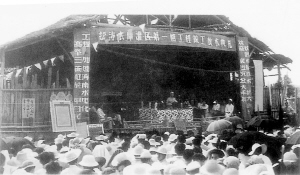 | 1959年8月,海南区党委副书记、松涛水库党委书记、海南松涛水利工程局局长李黎明在松涛6万人庆功大会上致词。 |