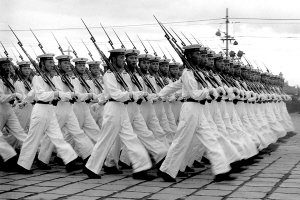 | 1955年,海军部队身着新式军装受阅。