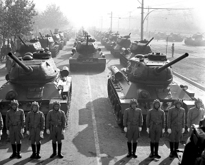 1953年国庆阅兵,受阅地面方队48个,共10038人。受阅武器为各种火炮144门,坦克、自行火炮67辆,汽车168辆,三轮摩托车165辆,军马770匹,飞机96架。