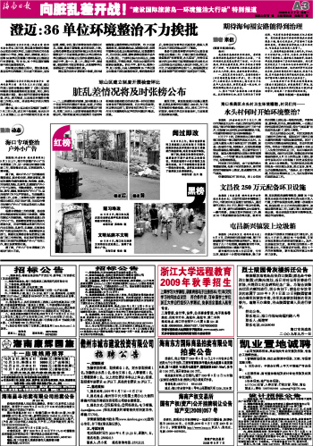 | 海南日报 向脏乱差开战! 003 2009-09-071 2009年09月07日 星期一 |