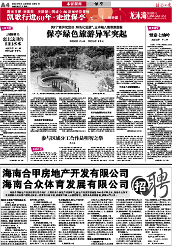 | 海南日报 本省新闻 保亭 004 2009-09-071 2009年09月07日 星期一 |