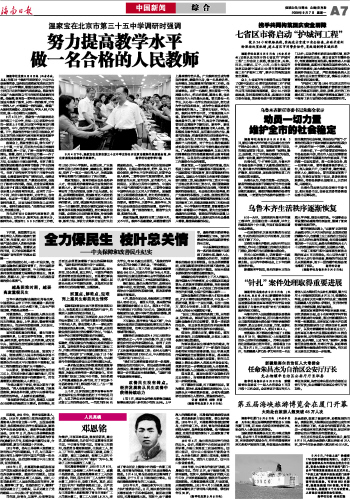 | 海南日报 中国新闻 综 合 007 2009-09-071 2009年09月07日 星期一 |