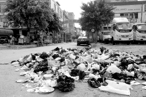 “昨晚有人将垃圾从小区里面清理出来,用手推车拉到这里。而这里是小区的出口路,旁边住的都是小区居民”,垃圾堆附近居民气愤地说。