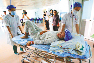| 昨天上午,澄迈县金江镇山口村妇女王少民被推进手术室。
