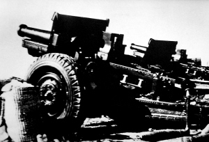| 1948年,辽沈战役时,东北野战军缴获的美制榴弹炮。