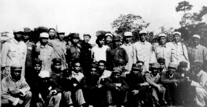 | 40军加强团登陆后与接应的先锋营、琼崖纵队领导会师合影。 |