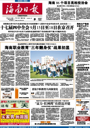 海南日报 头版 001 2009-09-091 2009年09月09日 星期三