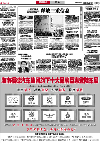海南日报 财经新闻 011 2009-09-091 2009年09月09日 星期三