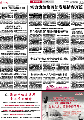 海南日报 本省新闻 003 2009-09-091 2009年09月09日 星期三