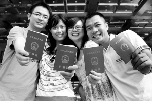 和谢小姐有同样想法的人不在少数。记者在各个婚姻登记处看到,虽然人很多,但秩序很好,准新人们都礼貌而幸福的期待着结婚证书上盖下2009年9月9日的印章。其中30岁以下的年轻人占了绝大部分。