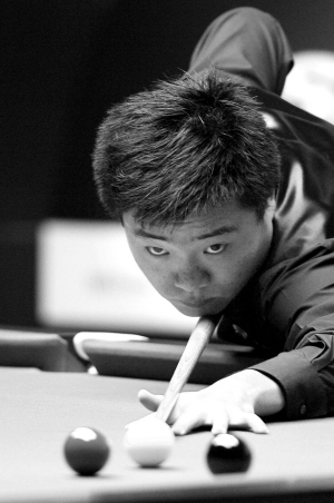 | 9月9日,中国选手丁俊晖在比赛中。当日,在2009世界斯诺克上海大师赛小组赛中,丁俊晖以5比2战胜英格兰选手斯蒂芬·李。 新华社发 |