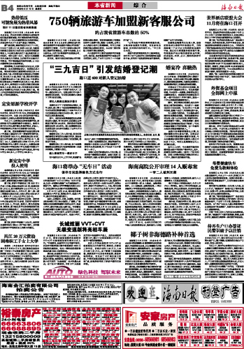 海南日报 本省新闻 012 2009-09-101 2009年09月10日 星期四