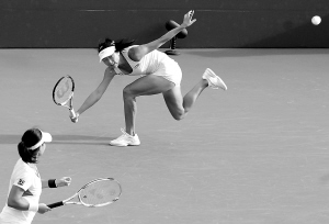 10日,在美网球女双四分之一决赛中,郑洁/晏紫以0:2负于威廉姆斯姐妹,无缘半决赛。 新华社发