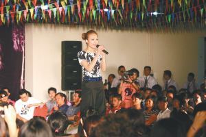 2006超级女声韩真真,今年7月刚刚在海南举行了新专辑的歌友会,现场直播歌友会的南海网视频当晚点击率高达13万次以上。今晚,她再度来到海口,为容祖儿的歌友会助阵。一曲动人小调歌曲《恋恋女人香》被韩真真演绎得婉转动人。随后,在游戏环节中,韩真真与现场主持人玩起了歌曲PK赛,现场清唱《征服》、《愚人码头》以及《叶子》等三首经典歌曲选段,让歌迷大呼过瘾。