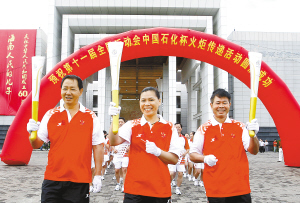 王丽芳手中的火炬,随后点燃了另外两名火炬手———中石化海南公司先进工作者陆建平、群众体育先进工作者冯川建手中的火炬。参加起跑仪式的各界代表一片欢腾。