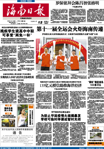 海南日报 头版 001 2009-09-121 2009年09月12日 星期六