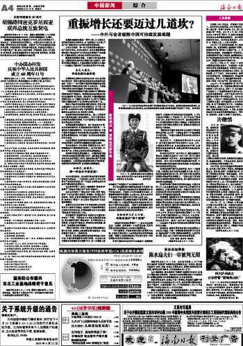 海南日报 中国新闻 综 合 004 2009-09-121 2009年09月12日 星期六