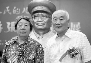 | 张云逸大将长子张远之夫妇在父亲像前合影。 本报记者 张杰 摄 |