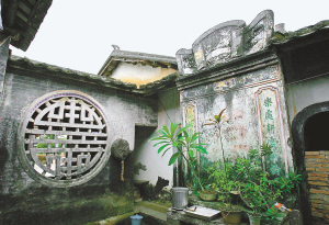 | 儋州南丰镇海雅村林氏围屋里的照壁和壁窗。 |