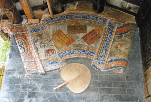 | 儋州南丰镇海雅村林氏围屋廊心墙上的卷册。 |