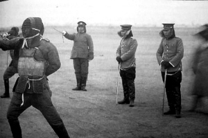 | ←1905年清朝军队阅兵及训练照片。1905年,袁世凯主导的北洋六镇新军全部练成。 |