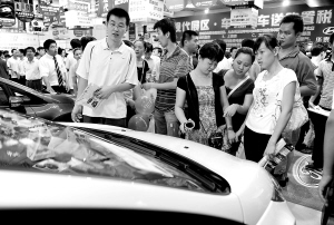 | 市民在展会上赏靓车。 本报记者 王凯 摄 |